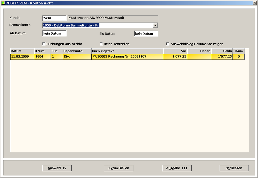 Debitoren - Kontoansicht