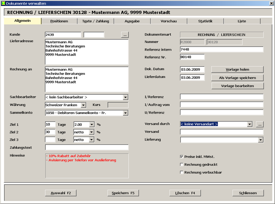 Von der Offerte bis zur Rechnung/Gutschrift lassen sich hier Dokumente erstellen.