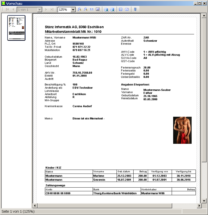 Viele Statistiken intern und extern stehen zur Verfügung und können auf verschiedene Arten eingegrenzt und ausgegeben werden. Hier als Beispiel das Mitarbeiterstammblatt.
