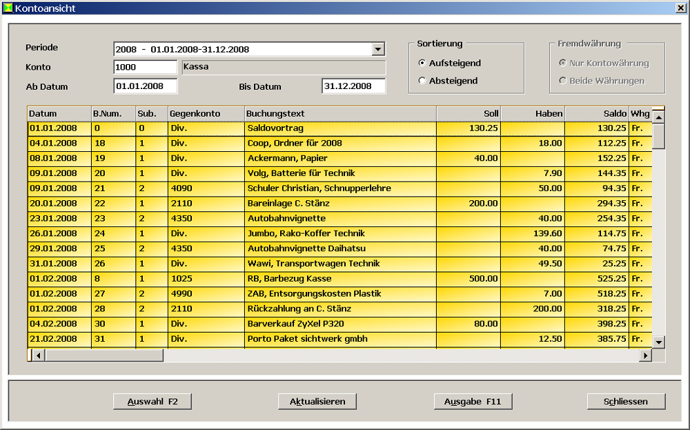 Finanzbuchhaltung - Kontoansicht